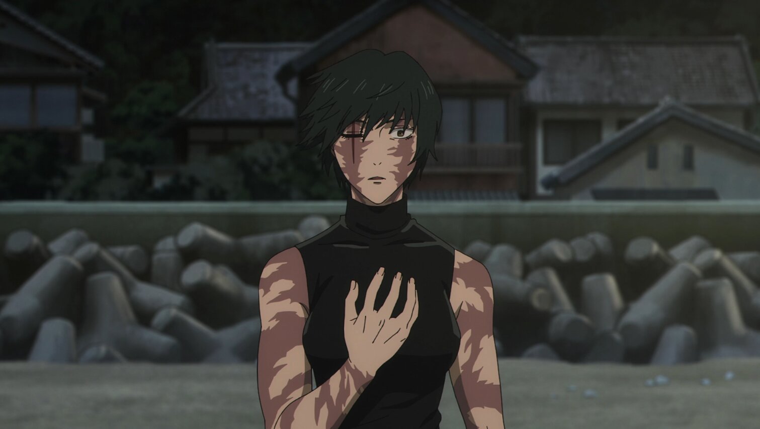 O episódio ainda reserva um momento silencioso e perturbador no confronto entre Maki e sua mãe. O olhar frio, misturado com medo e culpa, deixa claro que o trauma do clã vai além da violência física.